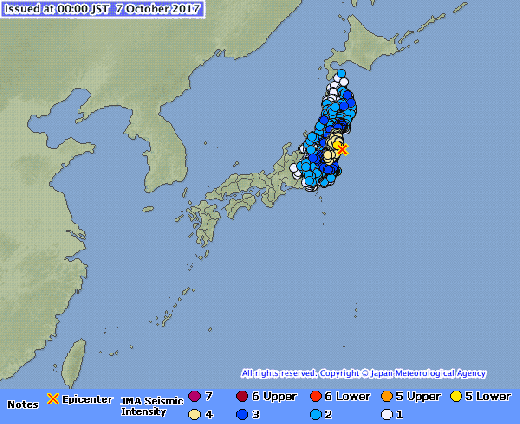지진으로 후쿠시마와 미야기, 이바라키 곳곳에서 지진동이 감지됐으며 도쿄에서도 일부 흔들림이 느껴진 것으로 전해졌다.