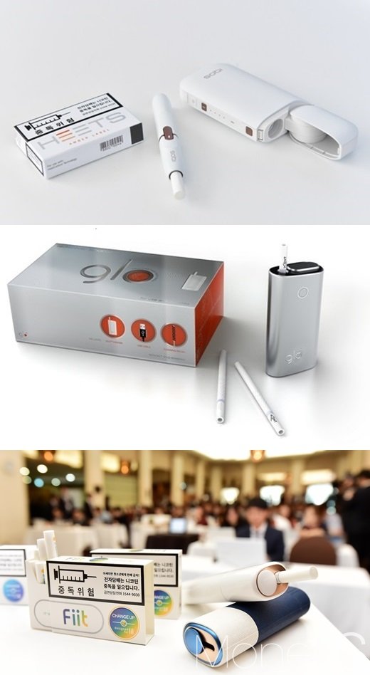 위에서부터 차례로 한국필립모리스 아이코스와 히츠, BAT코리아 글로와 네오스틱, KT&G 릴과 핏. /사진=한국필립모리스·BAT코리아·머니S DB