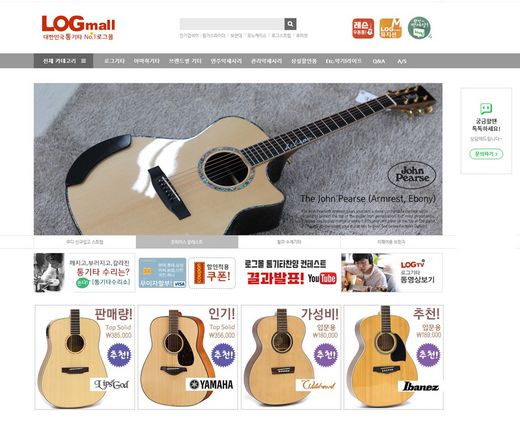 전자상거래 통합솔루션 ‘메이크샵’을 통해 운영중인 로그몰은 통기타와 그에 필요한 1500여 가지의 액세서리를 폭넓게 다루고 있는 통기타 전문 쇼핑몰이다.