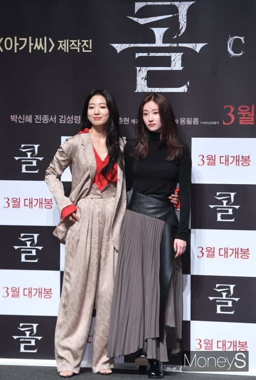 배우 박신혜(왼쪽), 전종서가 17일 오전 서울 강남구 신사동 CGV 압구정에서 열린 영화 '콜'(감독 이충현) 제작보고회에 참석해 포즈를 취하고 있다.