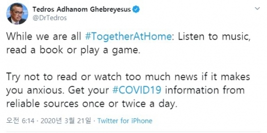 WHO가 게임을 질병유발물질로 규정한 지 1년만에 입장을 완전히 뒤집었다. /사진=테워드로스 아드하놈 거브러여수스 WHO 사무총장 트위터 캡처