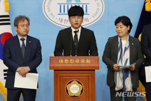 가수 고 구하라씨 친오빠 구인호씨(가운데)가 부양의무를 게을리 한 상속자는 재산을 상속받지 못하도록 하는 일명 '구하라법'(민법 상속편 일부 개정안)의 신속한 처리를 촉구했다. /사진=뉴시스
