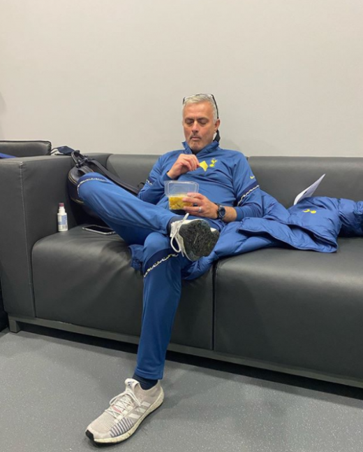 조세 무리뉴 토트넘 홋스퍼 감독이 유로파리그 승리에 또다시 'SNS'를 가동했다.무리뉴 감독은 6일(이하 한국시간) 자신의 인스타그램에 소파에 앉아 여유롭게 무언가 먹는 사진을 게재했다. 그는 사진과 함께 "이기긴 했지만 그렇게 경기를 잘 뛰지는 않았을 때의 모습"이라는 설명을 덧붙였다.
