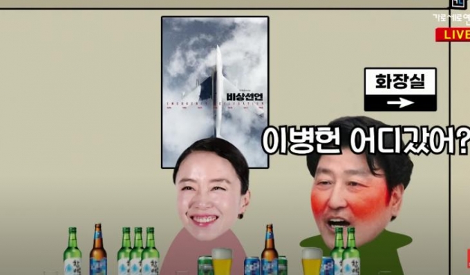 김용호에 따르면 송강호는 배우 전도연, 이병헌 등 영화 '비상선언'팀과 술자리를 가졌다. 여기서 송강호가 화장실을 간 사이 이병헌이 먼저 집에 갔다. 돌아온 송강호는 화를 내며 전도연에게 이병헌을 부르라는 등 큰 소리를 내고 소란을 피웠다고 한다.