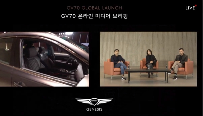 제네시스 브랜드가 8일 럭셔리 중형 SUV 'GV70'(지브이세븐티)를 글로벌 공개하고 온라인 미디어 간담회를 개최했다. 이날 제네시스 GV70 온라인 미디어 Q&A에는 이인아 상무를 비롯해 이시혁 글로벌상품전동화추진실 상무와 윤일헌 디자인실 상무도 패널로 참석했다.