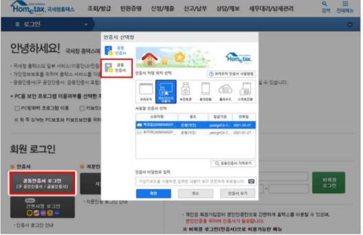 금융인증서비스 이용 고객은 홈택스에서 ‘공동인증서 로그인(구 공인인증서, 금융인증서)’ 또는 손택스에서 ‘금융인증서 로그인’을 선택한 후 간편비밀번호를 입력하면 인증이 완료된다.