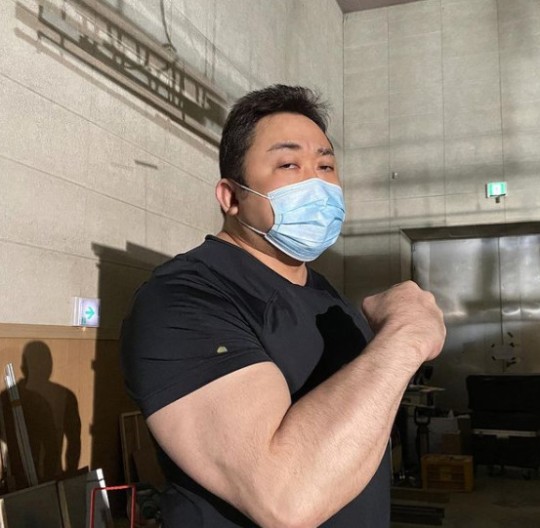 공개된 사진 속 촬영장에서 마동석은 자신의 얼굴 둘레보다 커 보이는 팔뚝을 자랑하고 있다. 우람한 체격과 비현실적인 팔뚝 크기가 놀라움을 자아낸다.