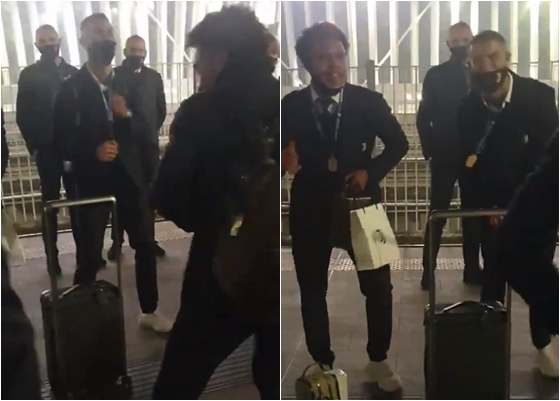 유벤투스 공격수 크리스티아누 호날두가 21일(한국시간) SSC나폴리와의 슈퍼컵이 끝난 뒤 토리노로 돌아가는 길에서 동료들과 한바탕 춤판을 벌였다. /사진=유벤투스 공식 트위터 영상 캡처