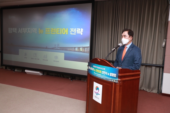 평택시는 15일 평택항 홍보관에서 정장선 시장과 국・도・시의원, 지역주민들이 참석한 가운데 평택 서부지역을 새로운 대한민국 중심도시로 조성하는 비전을 담은 서부지역 뉴 프런티어 선언식 및 설명회를 개최했다고 밝혔다. 정장선 평택시장은 그동안 상대적으로 소외됐던 평택 서부지역 발전을 위한 주요 정책들을 설명했으며, 2030년까지 서부지역을 21만 도시로의 성장 초석을 마련해 새로운 평택시의 중심으로 구축한다는 중장기 비전을 제시했다.