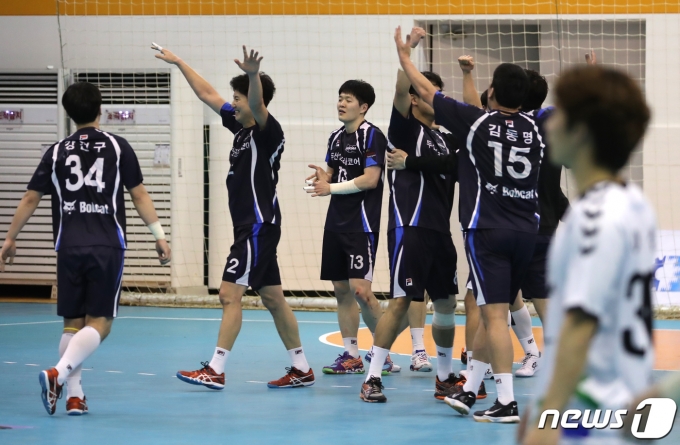 [사진] 두산, 핸드볼 코리아 리그 우승 확정 뉴스1 제공 |ViEW 740| 2021.02.15 18:45:09 (청주=뉴스1) 장수영 기자 = 15일 오후 충북 청주시 SK호크스아레나에서 열린 2020-2021 SK핸드볼코리아리그 남자부 챔피언결정전 2차전에서 두산 선수들이 6시즌 연속 통합 우승을 확정한 뒤 기뻐하고 있다. 2021.2.15/뉴스1<저작권자 © 뉴스1코리아, 무단전재 및 재배포 금지> <저작권자 © ‘재테크 경제주간지’ 머니S, 무단전재 및 재배포 금지>