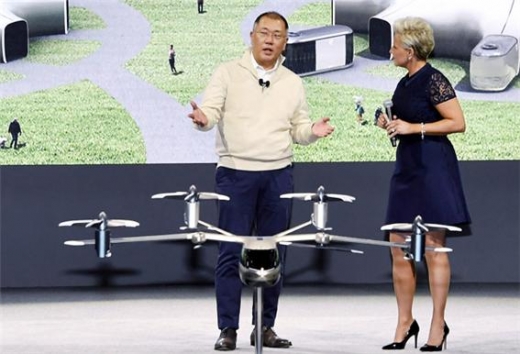 모빌리티 기업으로의 전환을 선포한 현대자동차그룹이 미래 사업의 핵심 중 하나인 'UAM'(도심항공모빌리티) 사업의 글로벌 거점을 미국에 세운다. 사진은 정의선 현대차그룹 회장이 2020CES에서 UAM과 관련한 비전을 설명하는 모습. /사진제공=현대차그룹