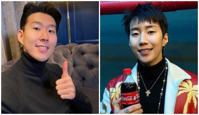토트넘이 손흥민(왼쪽), 박재범 컬래버레이션 가능성을 암시하는 트윗을 올렸다. /사진=손흥민 인스타그램, 박재범 인스타그램 캡처