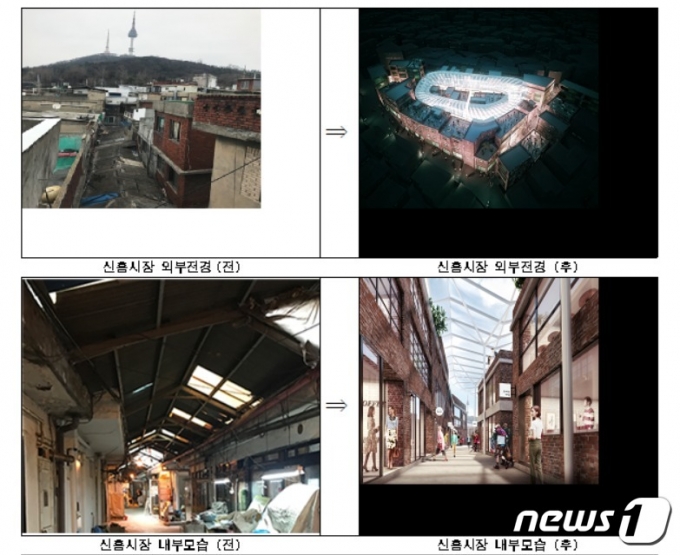 해방촌 신흥시장 도시재생 사업 시행 전후 모습.(서울시제공)© 뉴스1