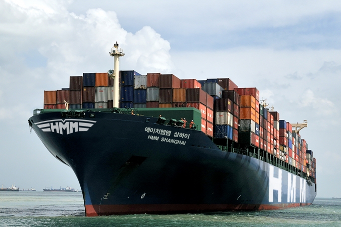 수출기업들의 화물을 싣고 지난 7일 부산항에서 출항한 6800TEU급 컨테이너선 'HMM 상하이호' 모습. /사진=HMM