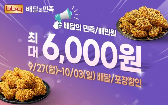 치킨 프랜차이즈 제너시스BBQ(회장 윤홍근)가 배달의민족에서 전 메뉴를 대상으로 최대 6,000원 할인 프로모션을 진행한다.