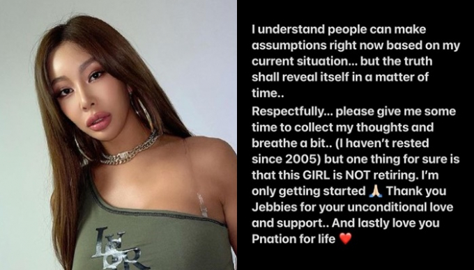 제시는 글을 통해 "정중하게 부탁한다. 나에게 생각을 정리할 시간과 숨을 좀 쉴 수 있는 시간을 달라. 2005년부터 쉰 적이 없다"며 "한 가지 확실한 건 은퇴는 아니다. 난 이제 시작이다"고 밝혔다.