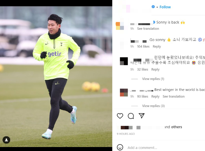 15일(이하 한국시각) 토트넘은 인스타그램에 팀이 훈련하는 모습을 올렸다. 카타르월드컵에서 탈락한 국가의 선수들이 속속 합류하고 있으며 이 중 손흥민의 모습도 눈에 띄었다.