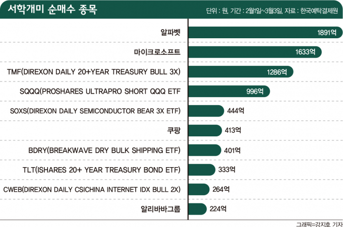 투심 엇갈리는 서학개미, 상승 vs 하락 베팅━