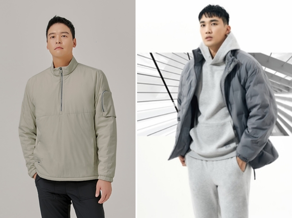 최근 아웃도어 트렌드로 가벼운 등산 외에 데일리웨어로도 활용 가능한 '고프코어룩'이 대세로 떠올랐다. 사진은 마운티아 수프리모(왼쪽)와 레드페이스 미케니컬 엠보 튜브 테크 다운재킷 관련 이미지. /사진=각 사