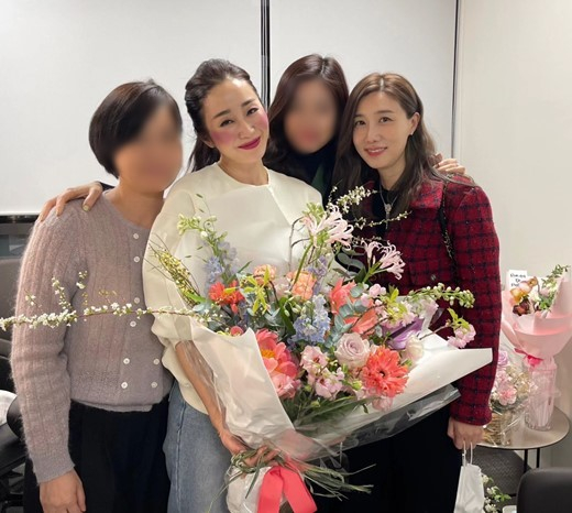 김경화는 커다란 꽃다발을 들고 지인들과 인증샷을 남기고 있다. 특히 이들 중에는 유재석 아내 나경은의 모습도 담겨 눈길을 사로잡는다. 나경은은 유재석과 결혼 후 방송 활동을 중단하고 육아에만 전념하고 있다. 오랜만에 공개된 나경은은 단아하고 아름다운 미모를 뽐내고 있다.