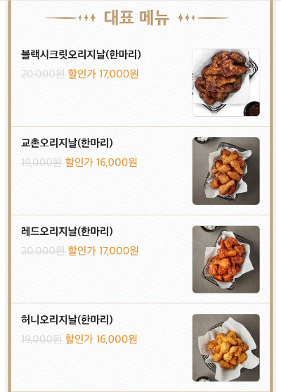 교촌치킨이 배달의민족에서 주요 메뉴를 할인 판매 중이다. /사진=배달의민족 애플리케이션 캡처