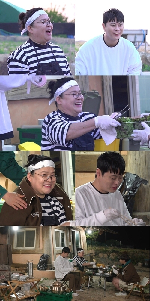 이영자는 앞서 '전참시'에 출연한 김민석이 상추 5장에 고기 1점을 싸먹는 모습을 기억하고 상추를 종류별로 준비해 상추전 등의 음식을 선보였다.