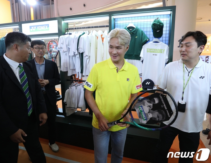 프랑스 오픈 테니스 대회의 테니스 코트처럼 연출한 이번 팝업스토어에서는 다양한 테니스 용품을 만날 수 있다. 2023.5.28/뉴스1