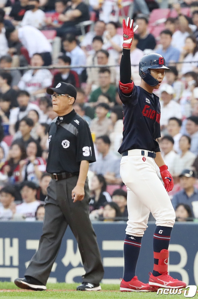 [사진] 롯데 박승욱 '안타다' 뉴스1 제공 |ViEW 369| 2023.05.31 19:21:02 (서울=뉴스1) 이재명 기자 = 31일 오후 서울 송파구 잠실야구장에서 열린 프로야구 '2023 신한은행 SOL KBO리그' 롯데 자이언츠와 LG 트윈스의 경기 3회초 무사 주자없는 상황, 롯데 박승욱이 안타를 친 후 세리머니를 하고 있다. 2023.5.31/뉴스1Copyright © 뉴스1. All rights reserved. 무단 전재 및 재배포 금지. <저작권자 © ‘재테크 경제주간지’ 머니S, 무단전재 및 재배포 금지>