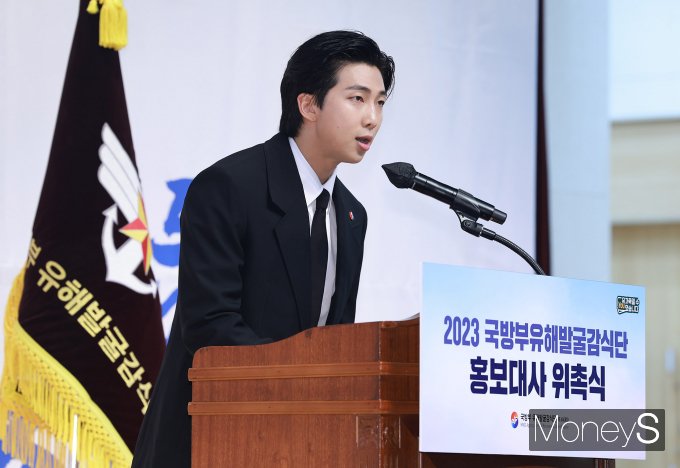 이날 방탄소년단 RM은 "전사자 유해발굴은 조국을 지키기 위해 목숨을 바치신 모든 분들을 존경하고, 그분들께 최고의 예를 갖추는 일이기에 자부심과 함께 막중한 책임감을 느낀다"고 말했다.