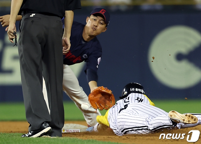 [사진] 공이 더 빨랐다 뉴스1 제공 |ViEW 426| 2023.06.01 20:51:03 (서울=뉴스1) 박정호 기자 = 1일 오후 서울 송파구 잠실야구장에서 열린 2023 신한 SOL KBO리그 롯데 자이언츠와 LG 트윈스의 경기 8회말 1사 주자 1루 LG 문보경 타석 때 1루 주자 신민재가 도루에 실패하고 있다. 2023.6.1/뉴스1Copyright © 뉴스1. All rights reserved. 무단 전재 및 재배포 금지. <저작권자 © ‘재테크 경제주간지’ 머니S, 무단전재 및 재배포 금지>