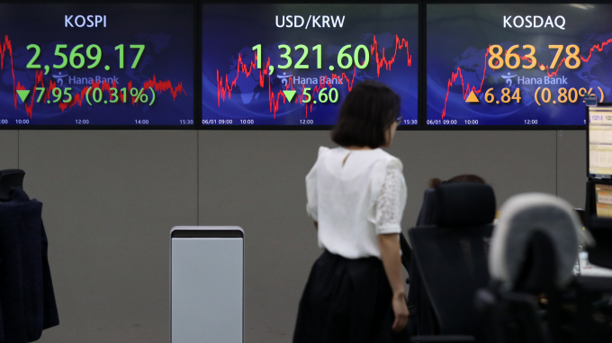 지난 1일 서울 중구 하나은행 명동점 딜링룸 전광판에 코스피 지수가 전 거래일보다 7.95포인트(0.31%) 하락한 2569.17을 나타내고 있다./사진=뉴스1