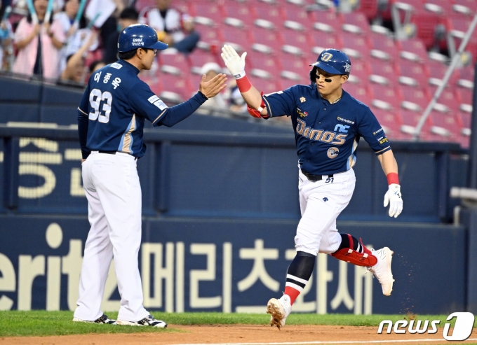 [사진] 손아섭, 역전 투런포의 사나이 뉴스1 제공 |ViEW 608| 2023.06.02 19:54:05 (서울=뉴스1) 이동해 기자 = 2일 오후 서울 송파구 잠실야구장에서 열린 2023 신한 SOL KBO리그 NC 다이노스와 LG 트윈스의 경기, 5회초 1사 2루 NC 손아섭이 역전 투런홈런을 쏘아올린 뒤 이종욱 3루코치와 하이파이브를 나누고 있다. 2023.6.2/뉴스1Copyright © 뉴스1. All rights reserved. 무단 전재 및 재배포 금지. <저작권자 © ‘재테크 경제주간지’ 머니S, 무단전재 및 재배포 금지>