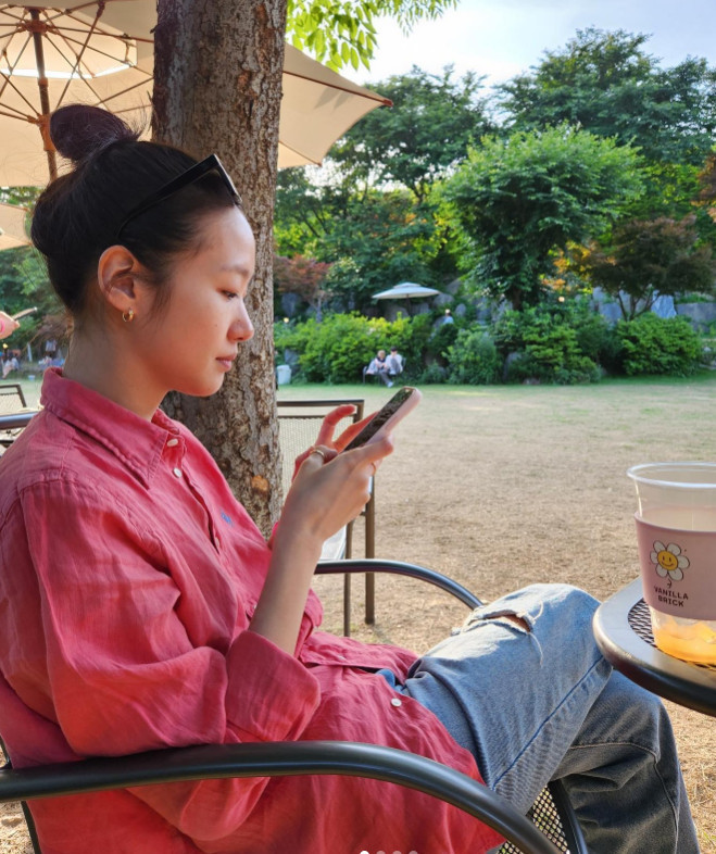 공개된 사진 속에는 김고은이 반려견과 함께 한가로운 주말을 즐기고 있는 모습이 담겼다. 선글라스를 올백으로 넘긴 머리 위에 착용한 그는 잡티 하나 없는 피부와 자연스러운 분위기로 시선을 사로잡았다.