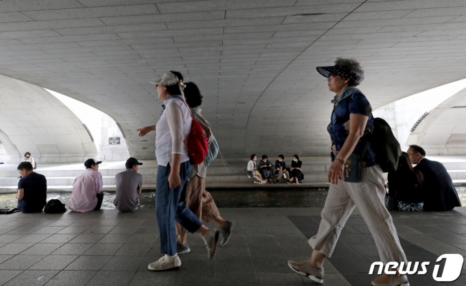서울 낮 최고기온이 29도까지 오르는 등 무더운 날씨를 보인 30일 서울 중구 청계천을 찾은 시민들이 그늘에 앉아 더위를 식히고 있다. 2023.5.30/뉴스1 ⓒ News1 장수영 기자