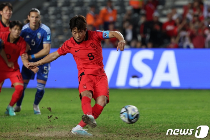 [사진] PK 성공시키는 이승원 뉴스1 제공 |ViEW 449| 2023.06.09 06:36:03 (라플라타(아르헨티나)=뉴스1) 이승배 기자 = 이승원이 8일(현지시간) 아르헨티나 라플라타 라플라 스타디움에서 열린 'FIFA U-20 월드컵 아르헨티나 2023' 준결승전 한국과 이탈리아의 경기에서 페널티킥 동점골을 성공시키고 있다. 2023.6.9/뉴스1Copyright © 뉴스1. All rights reserved. 무단 전재 및 재배포 금지. <저작권자 © ‘재테크 경제주간지’ 머니S, 무단전재 및 재배포 금지>