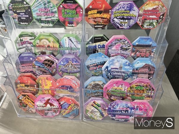 하이커 그라운드 5층에는 휴식공간과 관광안내센터가 있다. 사진은 지난 1일 오후 하이커 캘린지 코너에서 선택할 수 있는 관광지 홍보용 딱지들. /사진=최자연 기자