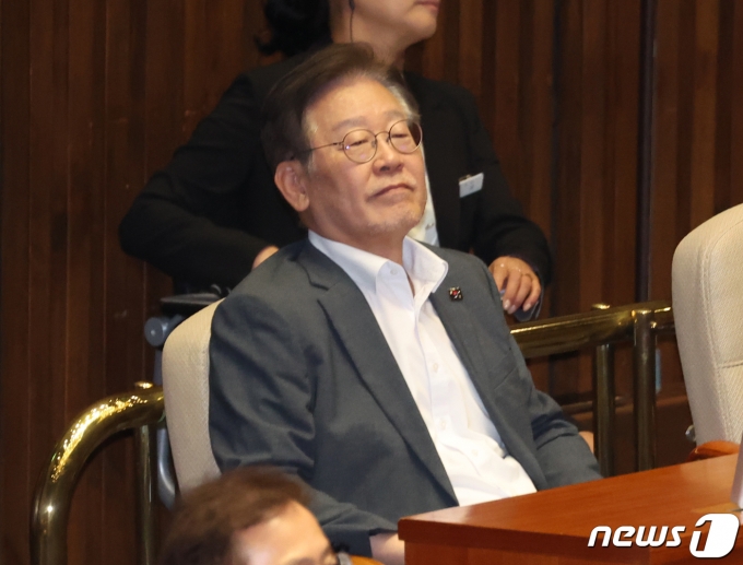 이재명 더불어민주당 대표가 8일 서울 여의도 국회 본회의장에서 열린 교육·사회·문화 대정부질문에 참석하고 있다. 2023.9.8/뉴스1 ⓒ News1 송원영 기자