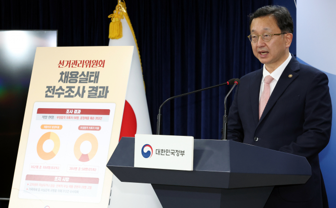 검찰이 선관위 자녀 특혜 채용 의혹과 관련해 압수수색에 나섰다. 사진은 정승윤 국민권익위원회 부위원장이 지난 11일 서울 종로구 세종대로 정부서울청에서 선거관리위원회 채용실태 전수조사 결과 발표하는 모습. /사진=뉴스1