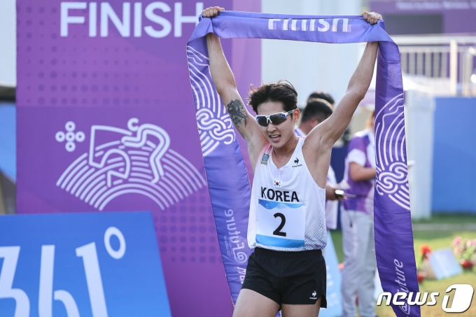 전웅태는 근대5종 남자 단체전에서도 금메달을 획득, 대한민국 최초 항저우 아시안게임 2관왕을 달성했다. 2023.9 24/뉴스1