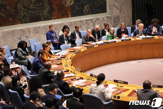 유엔 안정보장이사회가 미국 뉴욕 유엔 본부에서 북한의 대륙간탄도미사일(ICBM) 발사 문제를 논의하고 있다. 황준국 유엔 주재 한국 대사와 김성 유엔 주재 북한 대사가 참석해 발언했다. 2023.7.13. ⓒ AFP=뉴스1 ⓒ News1 김성식 기자