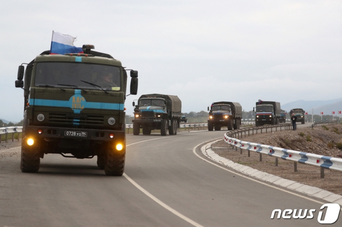 23일(이하 한국시간) 러시아 평화 유지군이 아제르바이잔과 아르메니아 간 분쟁 지역인 아르메니아의 나고르노 카라바흐 지역을 향해 이동을 하고 있다. 2023,9,24 ⓒ 로이터=뉴스1 ⓒ News1 우동명 기자