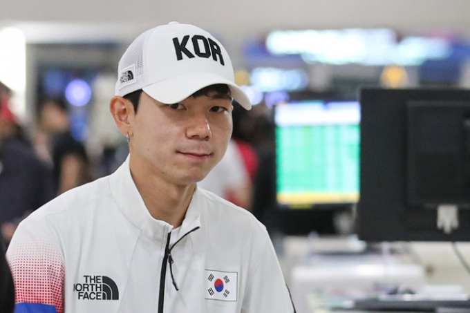세리머니하다 금메달을 놓친 롤러스케이트 정철원이 자신의 실수를 사과했다. 지난 3일 오후 인천국제공항 제1여객터미널을 통해 귀국한 정철원의 모습. /사진=뉴시스