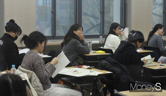 올해 대학수학능력시험(수능) 샤프 색깔은 '상아베이지'인 것으로 확인됐다. 사진은 16일 오전 서울 중구 이화여자외국어고등학교에서 수험생들이 마지막 준비를 하는 모습. /사진=장동규 기자