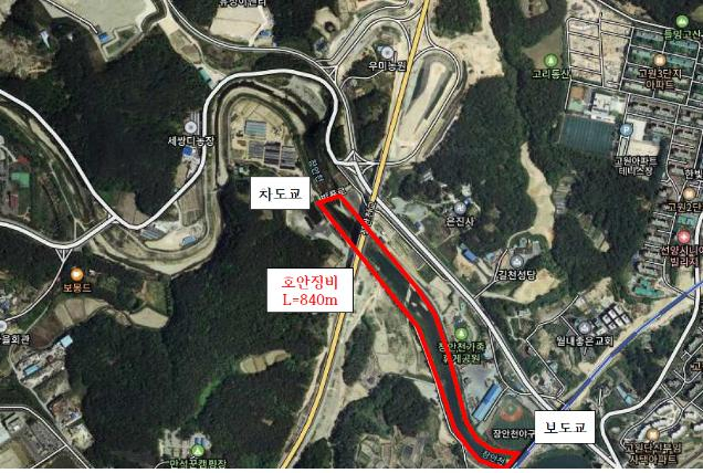 장안천 호안정비공사(차도교~보도교) 위치도/사진=정동만의원실