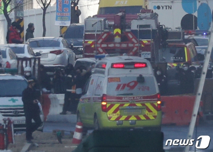 앰뷸런스가 화재 현장을 벗어나고 있다. ⓒ News1 김영운 기자