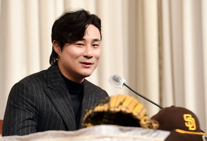김하성과 관련된 폭행 사건 의혹으로 그의 동료 야구선수들이 조사를 받았다. 메이저리그 샌디에이고 파드리스 소속 야구선수 김하성이 한국인 최초 골드글러브 수상 공식 기자회견에서 취재진 질문에 답하고 있다. /사진=장동규 기자