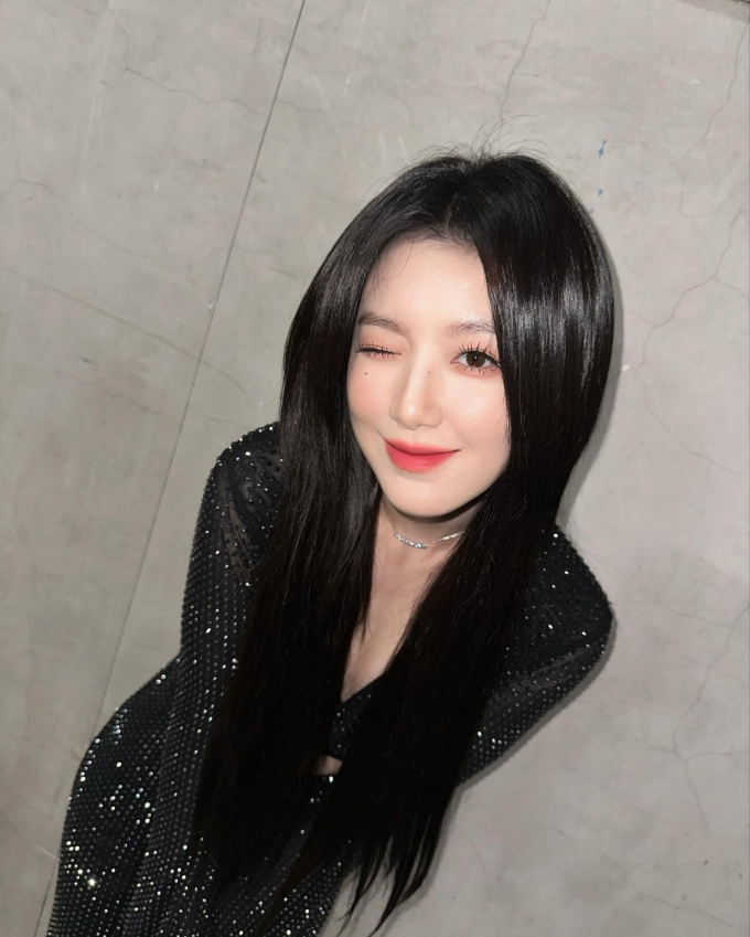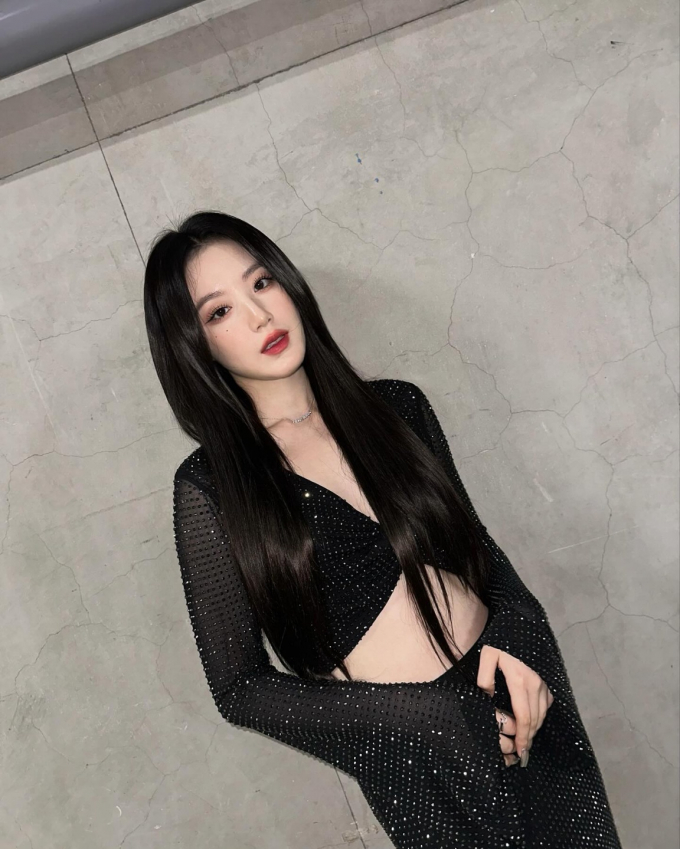 공개된 사진 속 슈화는 크리스털 장식으로 은은하게 빛나는 블랙 볼레로 상의와 롱스커트를 셋업으로 입고, 섹시한 올블랙 레드카펫 룩을 완성했다.