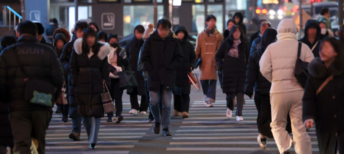 한파가 이어진 24일 저녁 서울 중구 명동에서 퇴근하는 직장인 등 시민들이 길을 걷고 있다. /사진=뉴시스