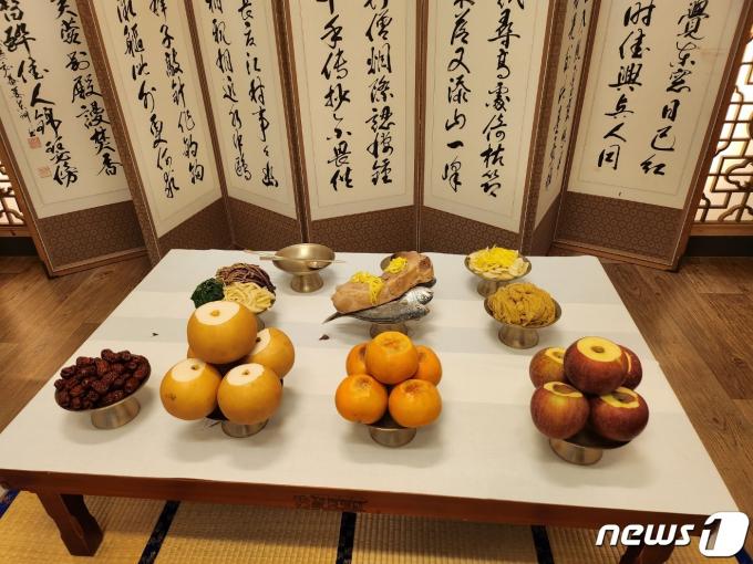 7일 서울 종로구 성균관유도회총본부에 차려진 '간소화 차례상'의 모습/뉴스1 ⓒ News1 서상혁 기자