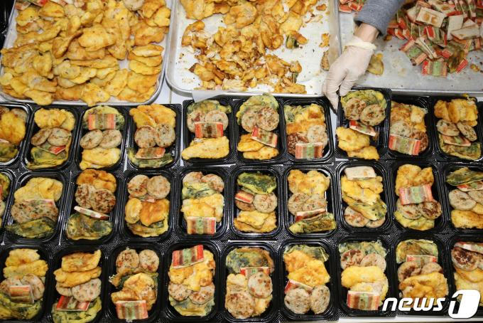 6일 대전 동구 정다운어르신복지관에서 열린 설 명절 나눔 행사에 참가자들이 어르신에게 전달할 음식을 포장하고 있다. 2024.2.6/뉴스1 ⓒ News1 김기태 기자